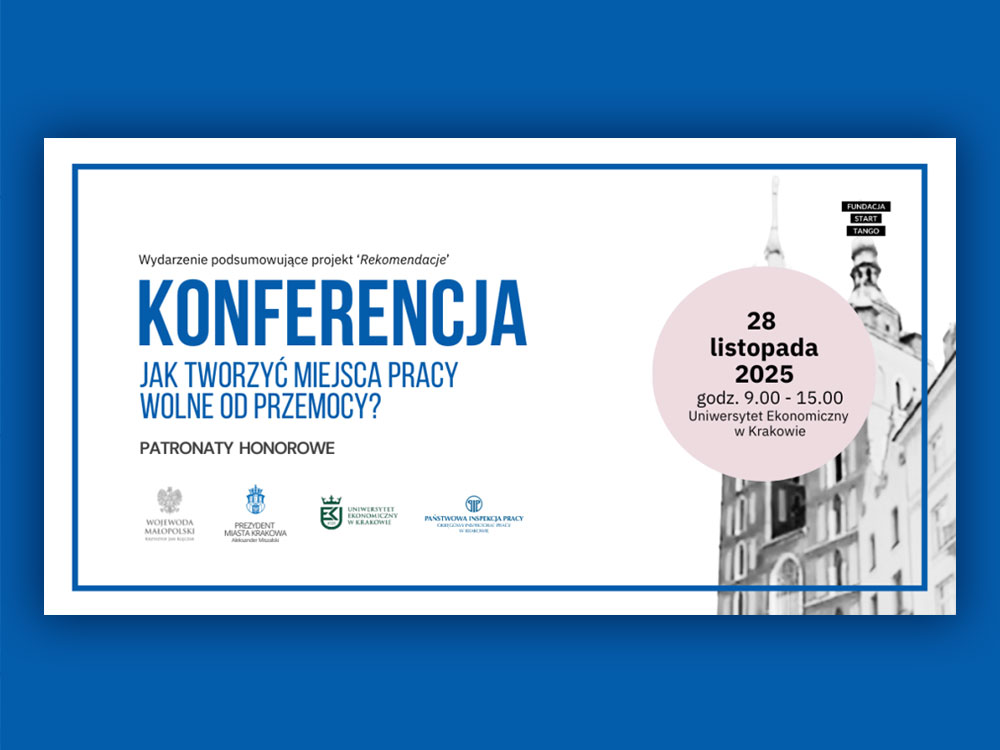 Projekt „Rekomendacje” realizowany w ramach akcji Masz Głos Fundacja Batorego otrzymał honorowe patronaty Wojewody Małopolskiego Krzysztofa Jana Klęczara oraz Prezydenta Miasta Krakowa Aleksandra Miszalskiego. Zwieńczeniem rocznej pracy jest uroczysta Konferencja pod tytułem „Jak tworzyć miejsca pracy wolne od przemocy?” organizowana przez Fundację Start Tango oraz Uniwersytet Ekonomiczny w Krakowie, która odbędzie się w dniu 28 listopada 2025 roku w godz. 9.00-15.00 na Uniwersytecie Ekonomicznym w Krakowie.